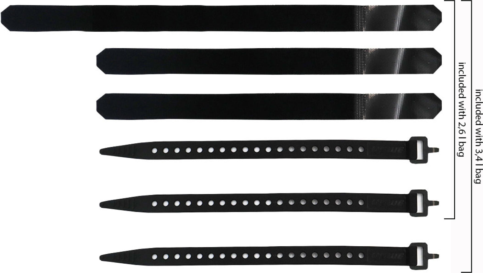 Wordt geleverd met elastische, rubberachtige straps en daarnaast drie extra klittenbandstraps in verschillende lengtes voor maximale compatibiliteit